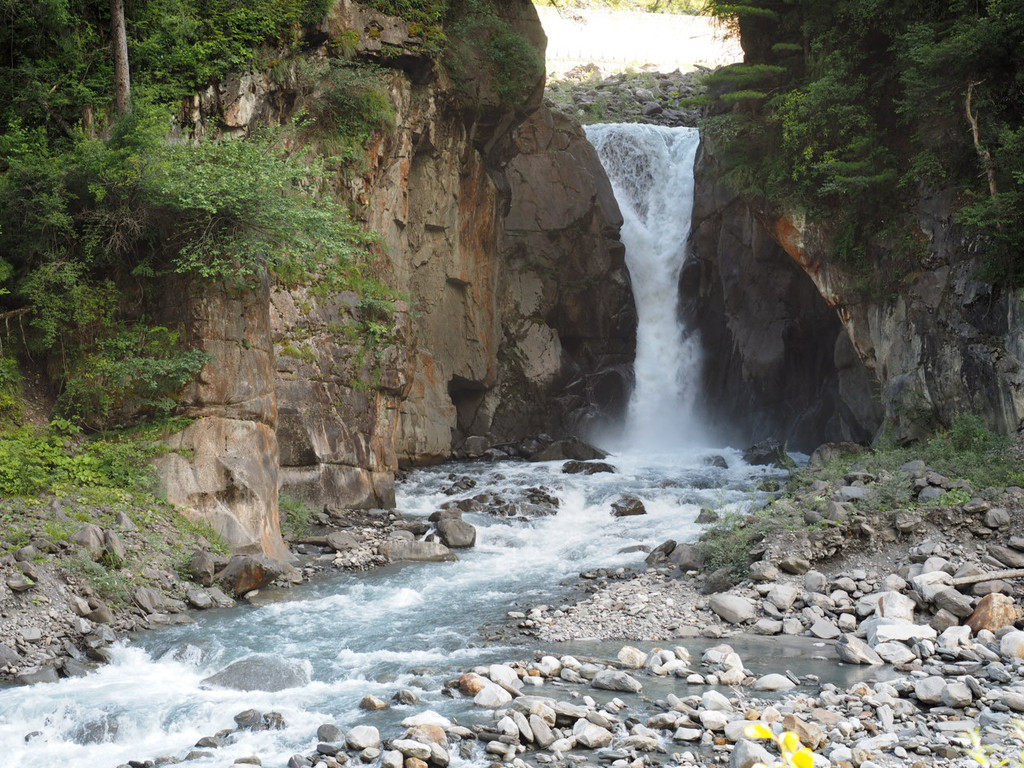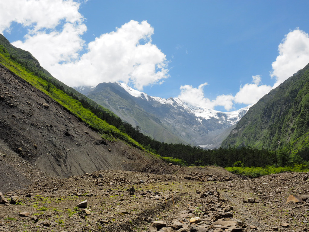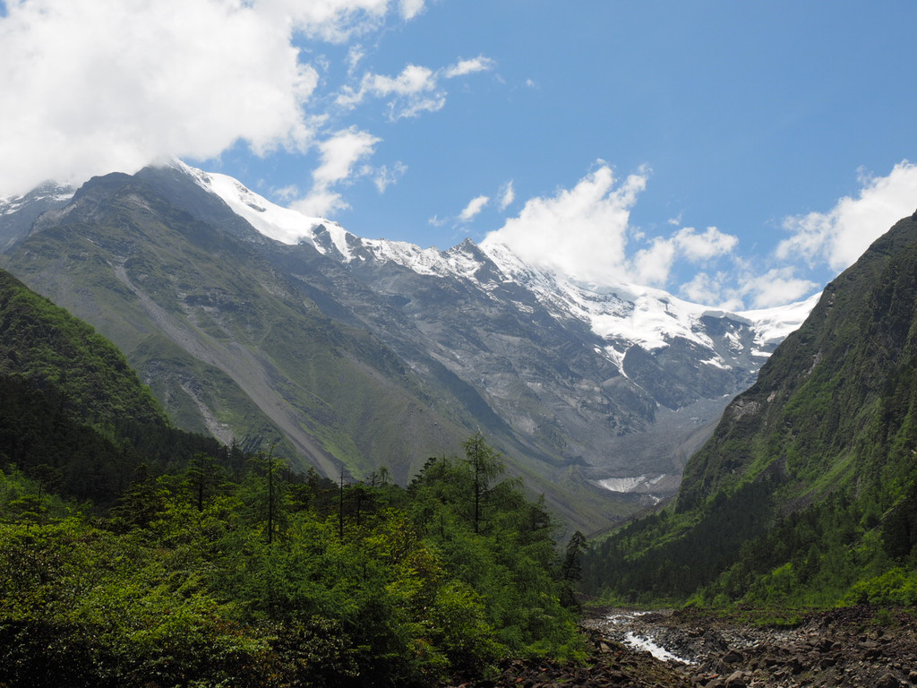 田湾河是贡嘎山最大河流,山水湍流,气势宏大,几十处瀑布飞