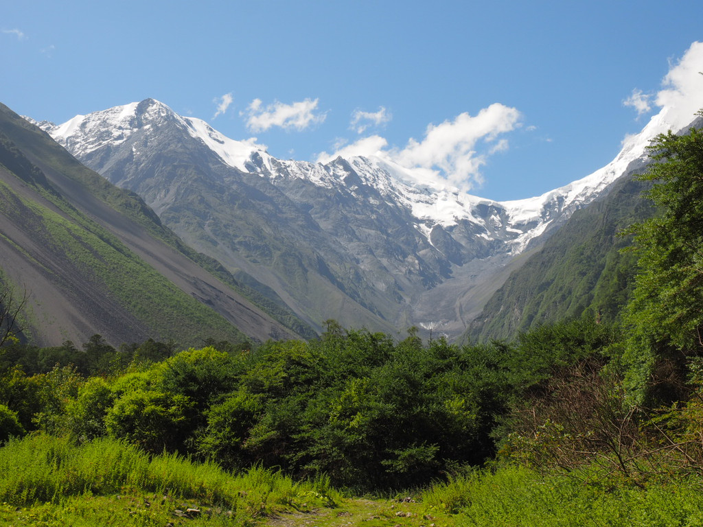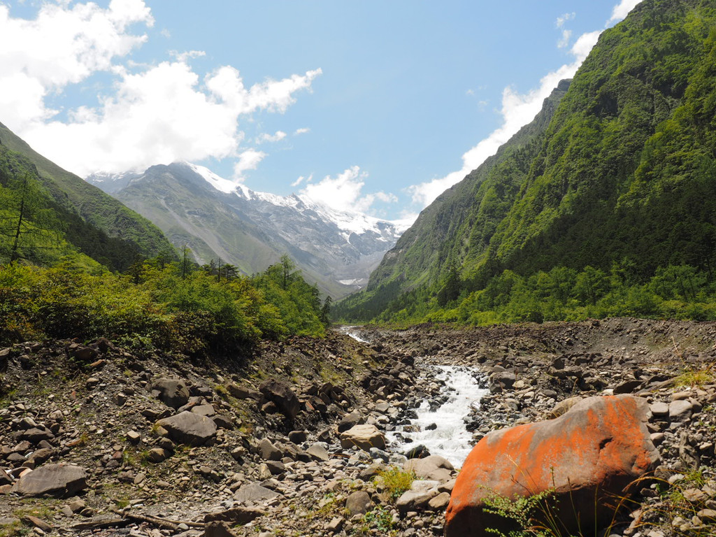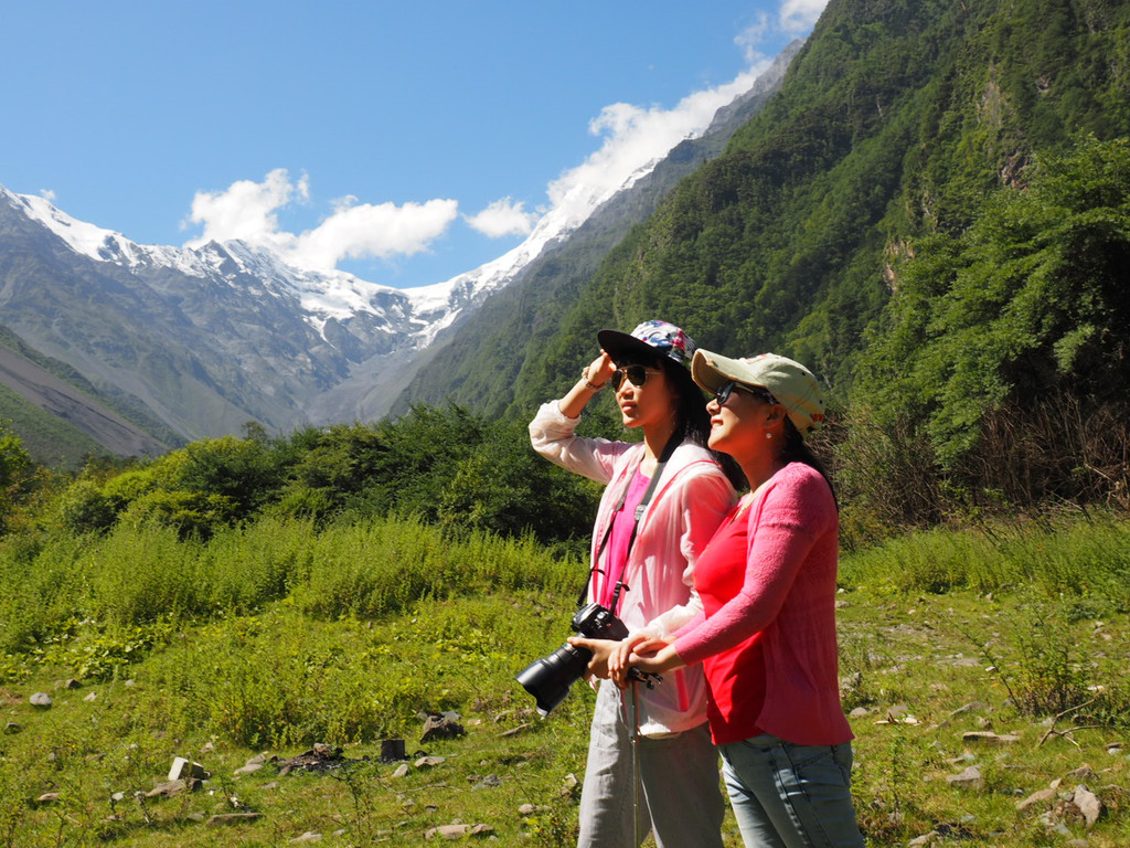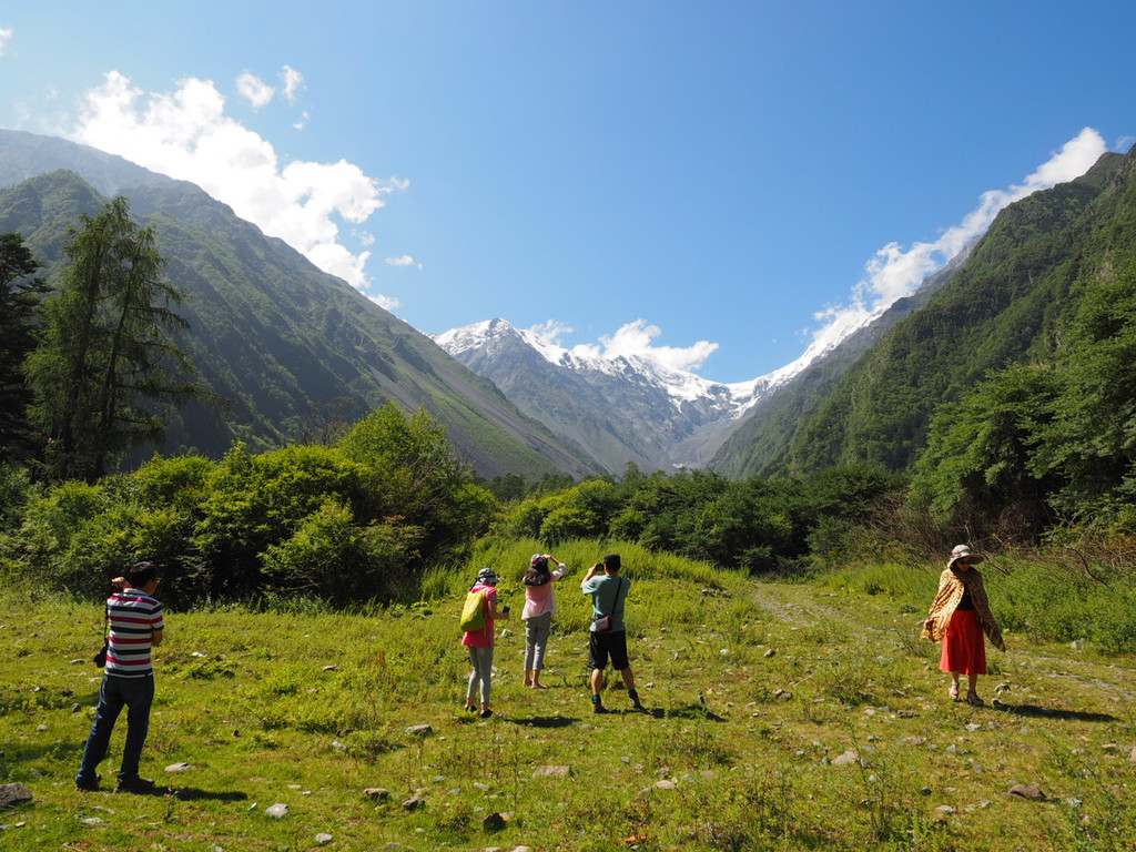 莲花山像七瓣莲花,可观日出、云海,5条巨大冰川可开发。冰川脚下的人中海尾和巴王海像镶嵌在山谷的蓝宝石,湖光山色,蓝天白云倒映其中妩媚动人。从草科继续上游,风光旖旎,景色秀美,高山流水,雪峰太阳,悬崖峭壁,森林瀑布,天然温泉,一幕幕呈现眼前。