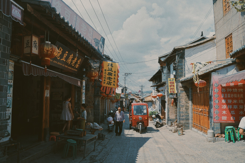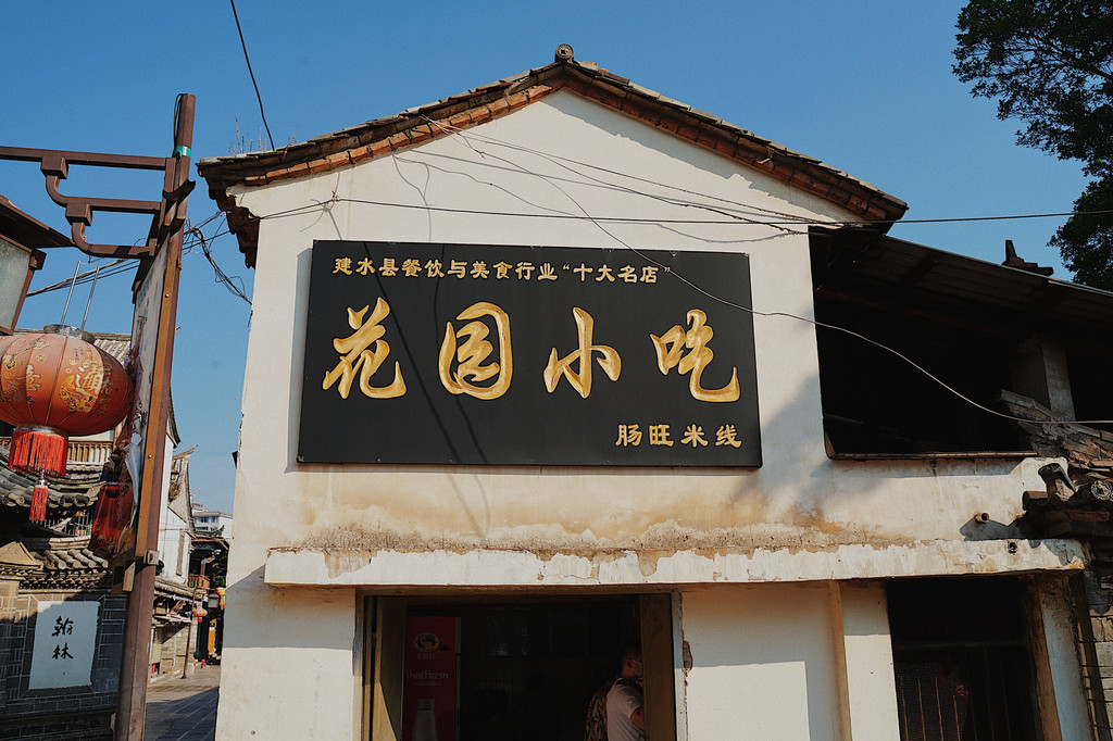 城外的西门一带,还延续着最早的生活气息。狭窄的、难以行车的小巷子,看起来有点破旧的老宅子,一排一排的电线与无数“烧豆腐”的招牌将天空分割开来。把车停在巷子口,这里是散步找找 建水 老生活的“保留地”。