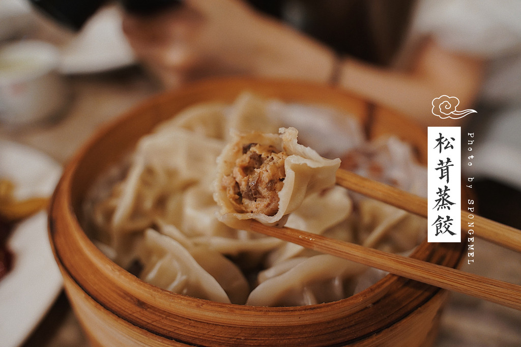 大半天的旅程早已饥肠辘辘,幸好提前点了一屉松茸蒸饺,聊以慰藉等待菌汤倒数时的望眼欲穿。个头有点大的蒸饺包裹着饱满的内馅,馅料中可以明显地看到一小块一小块的松茸。与肉香混合后的松茸香气毫不突兀,但毫不掩饰存在感,淡淡地为原本单调的肉馅增加了一丝不同寻常的清香。