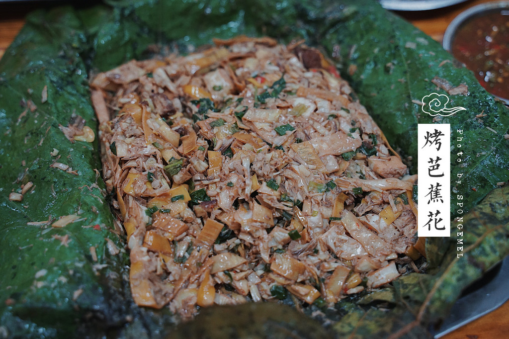 傣族、哈尼族等民族,喜欢用芭蕉花来入菜。将芭蕉花黄色的管状花朵洗净切碎,加入调味料腌制拌匀,在放入芭蕉叶中在火上充分加热。入口的芭蕉花口感软糯,样子和口感都很像是完全熟透的葱花,但细细咀嚼又有一点点芭蕉的香气,回味略有甘甜。