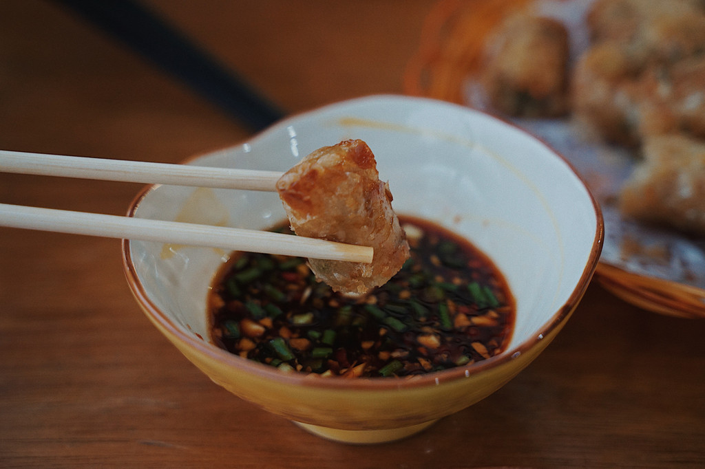 香菇肉香而不腻,葱肉用的是生葱,略有点“重口味”。蘸水酸辣咸鲜是绝对得加分项,不禁想到在胡志明嗦粉的日子,每一碗PHO中那升华灵魂的辣椒酱和柠檬汁。不知何时疫情结束,能再千里迢迢赴一场河粉之约。