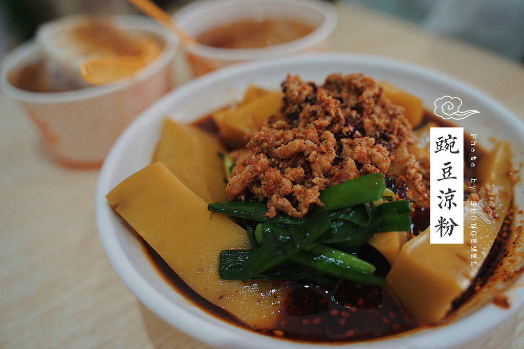 小吃街的“洪记凉米线”是家老字号,豌豆凉粉也是招牌之一。 昆明 的甜酱油不可或缺,再加入糖、醋、辣椒等配料,撒上韭菜段和肉酱,五彩缤纷又清爽美味的豌豆粉整装待发。