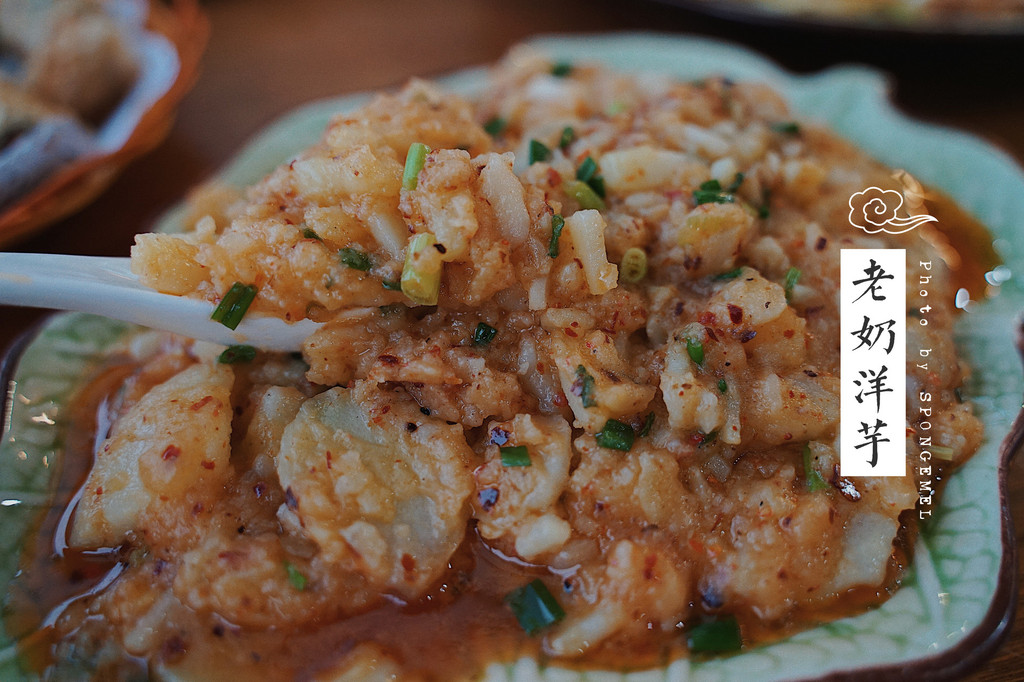 老奶洋芋、木瓜花炒蛋都是店里值得尝试的美味。切得碎碎的洋芋丁与辣椒、葱蒜同烹,就变成了下饭神器。木瓜花摊入蛋饼中,让鸡蛋霎时变得清爽,花朵微苦的口感出乎意料。大概是吃了一天不算饥肠辘辘,感叹美味的同时却也总觉得缺乏惊艳的怦然心动。掀起蛋饼,盘底流出的油量大概可以倒满一小碗,也大概算是“怦然心动”的一大特色了。