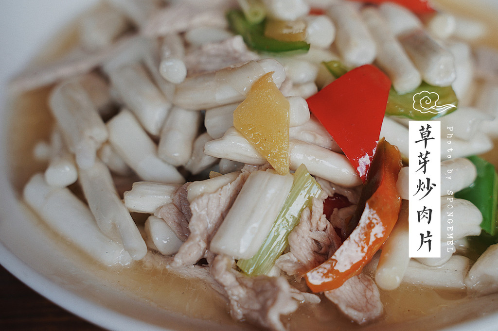 店里的炒杂菌,起初以为是很多种菌子炒在一起的吃法。上桌后发现只有一种菌子的形状,这才恍然 大悟 ,原来这菌子名叫“杂菌”。外皮有点泛红,内里却是干净的乳白色,经过丰富油脂的爆炒,菌子外面闪着光似的包裹着一层油。放入嘴中,满口尽是鲜香。