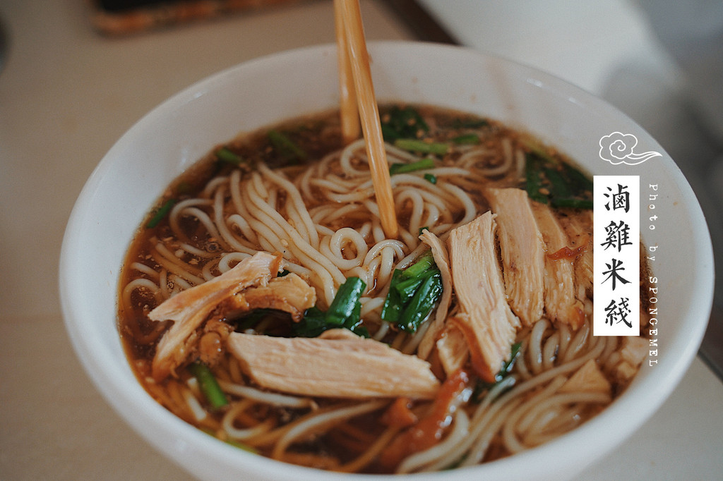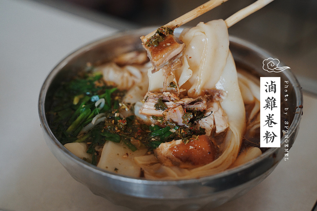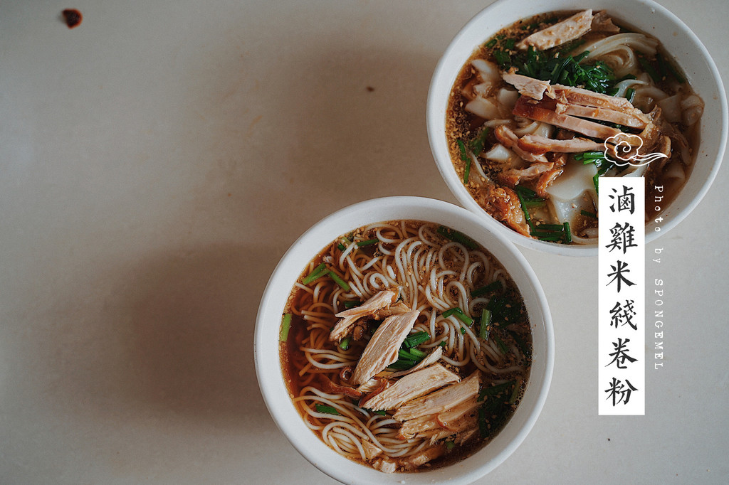 深色的卤汁咸香鲜美,鸡肉肉质松软,带有卤料特殊的香气。搭配店家自制的油辣子,香味就更佳丰富悠长了。切成细条的鸡肉丝丝分明,但却不硬不柴,口感细嫩得刚刚好。米粉细滑,卷粉柔韧,一时间很难分辨出哪个更好吃。但相比之下,卷粉无疑包裹了更多汤汁,将卤鸡的精华更多地送入口中。