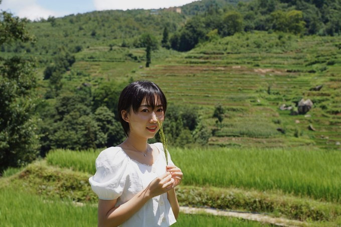 一路多是未经修缮的砂石路,前后总有大货车跟随,一个接连一个的急转弯......近4个小时全程神经紧绷,完全无暇顾及两边的风景。当终于停下车来放眼望去,青山连绵起伏,碧绿的稻田被分割成整齐的形状,一层一层铺去,一直到远方。稻田和天空仿佛离得很近,随着距离的延伸不断拉近、拉近,最终在视线的尽头彼此拥抱。