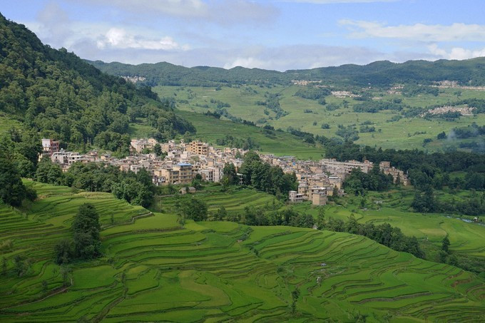 一个北方的孩子,第一次于群山之中看到这么大面积碧绿万顷的梯田,内心还是抑制不住的激动狂喜。飞奔下车,拿着相机不断变换角度、按快门,恨不得将这山间美景装入行囊,裹挟着一同奔向远方的道路。