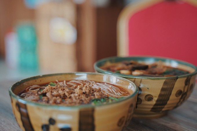 这里的酸菜牛肉米线,用的则是哈尼族红米制成的红米线,极其温柔细软,缺少普通米线的劲道感,但搭配任何汤底和浇头,都绝不出错。