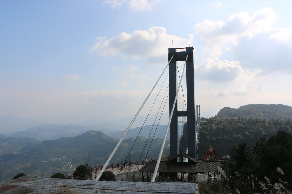 “世界上最长的悬挑空中玻璃走廊”,修建在石阡县龙井乡关口坪村,取名叫“仙人街景区”。此地离县城近三十公里。油门一踩,半个小时后,到达景区。