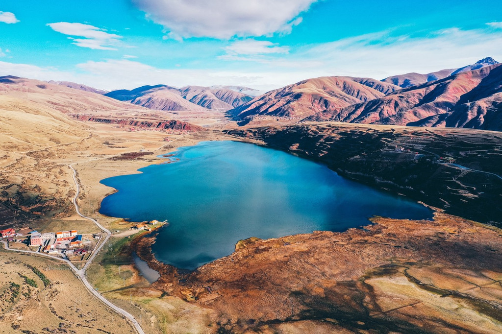 在雅砻江湿地和 石渠 县城之间的公路上,还有一个非常漂亮的湖泊--太阳湖。