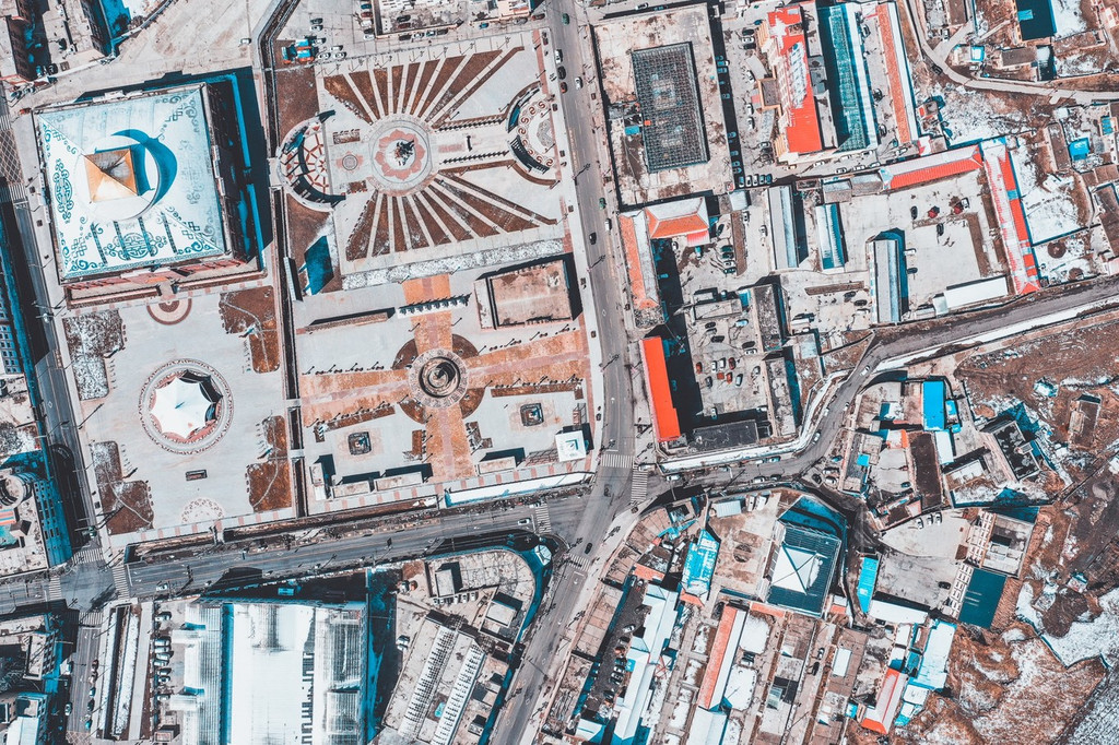从空中俯瞰下去,可以看到里面还有一座白塔,