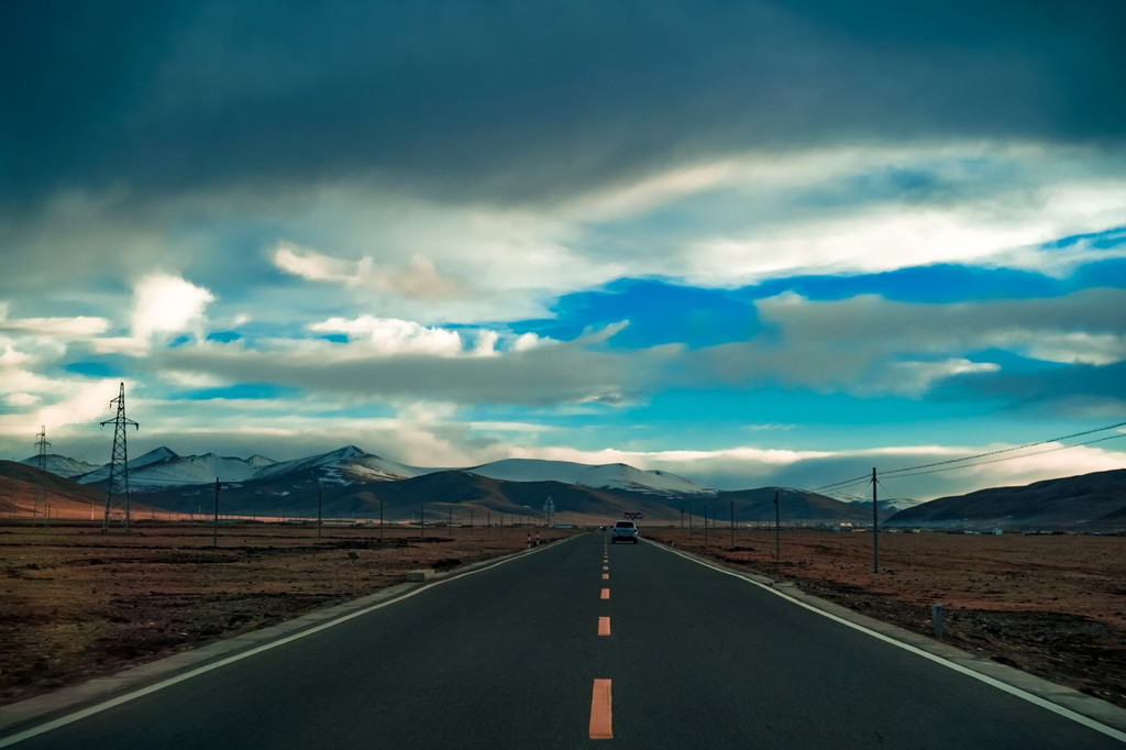 四周都是雪山,公路也非常笔直,最关键是车非常少,来这里拍公路大片也再合适不过了。
