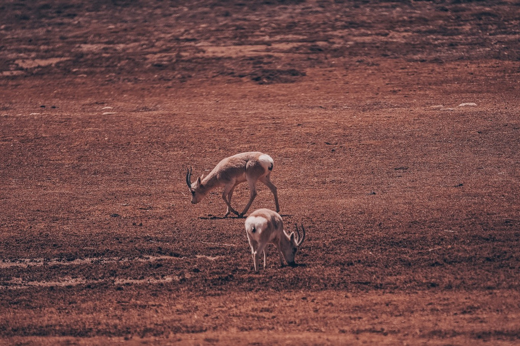 这个季节还有黑颈鹤也在湿地附近,往曾达方向走,山坡上有成群的白唇鹿,