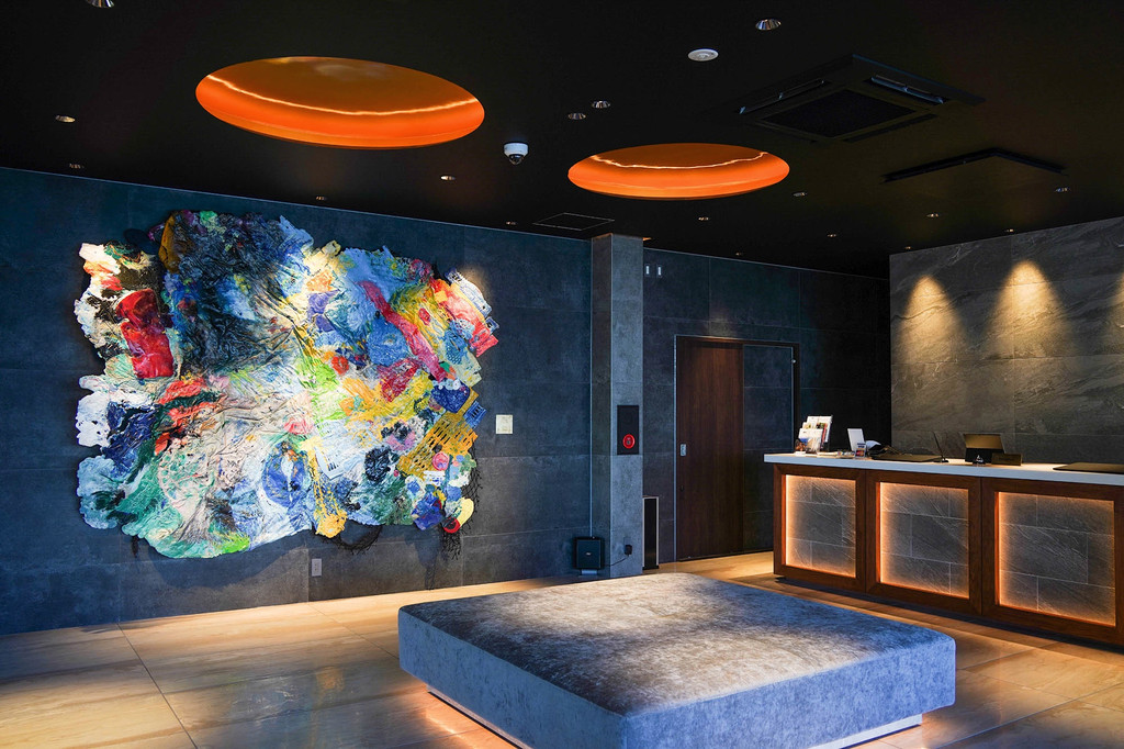 在lobby,有一幅巨大的艺术作品,是艺术家利用被冲上白滨海滩的废弃物再生而成的环保艺术作品。