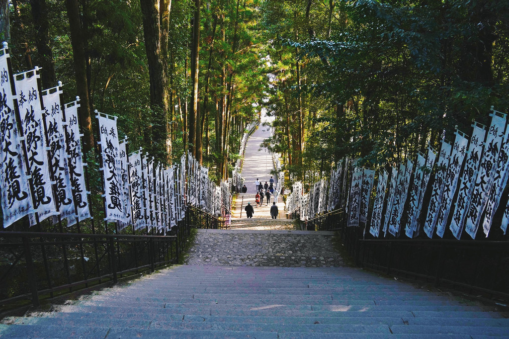 世界遗产熊野古道由纪伊路、小辺路、中辺路、大辺路和伊势路组成,它们的起点不同,但最终都通往同一个终点——熊野本宫大社。从酒店出发去到熊野古道,如果不进山徒步,花一天时间,也可以感受一下被茂密树林覆盖、充满神秘气息与天地之灵气的熊野古道。