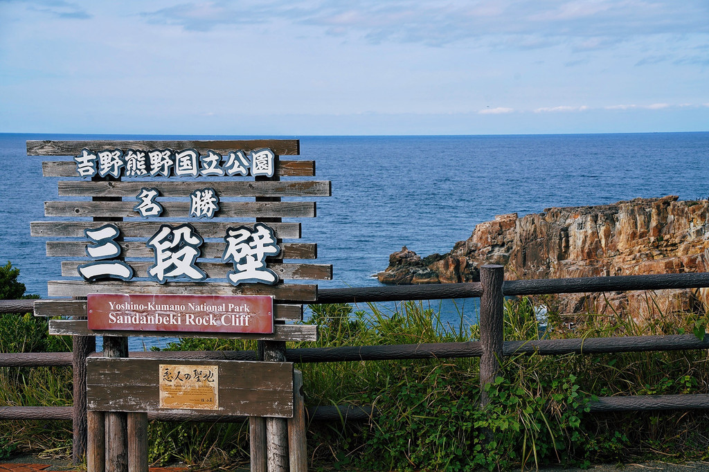 三段壁是一处约两公里的悬崖断壁,乘坐电梯下到36米的三段壁洞窟,是白浜历史最悠久的景点。
