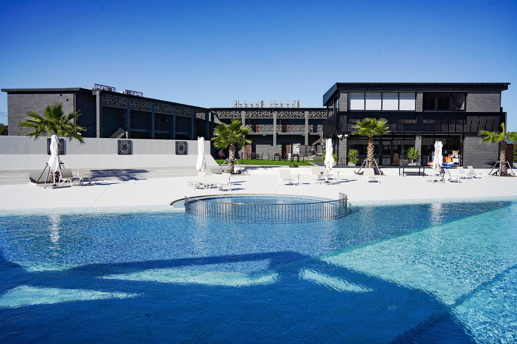 傍晚的时候还有驻唱歌手在草坪上现场表演,客人可以一边听音乐一边泡温泉泳池感受气氛。晚上还有音乐激光表演,夏天还可以走到沙滩上看花火哦!