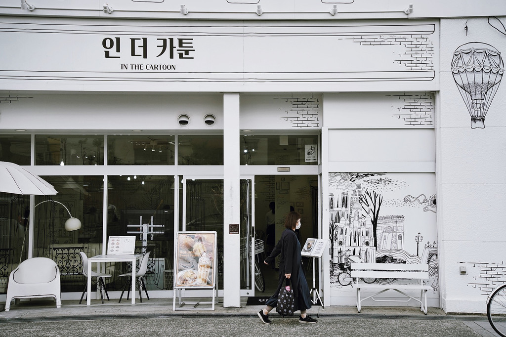 这片区域的咖啡甜品店也都很Korean style,特别是蕞受日本女生喜爱的「in the cartoon」妥妥的韩剧既视感。