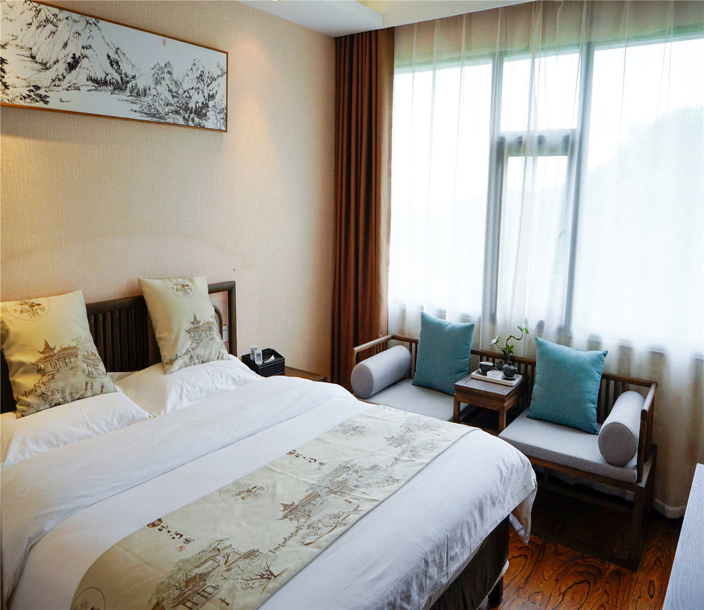 我们在南岩宫下了车天就已经快黑了,最终我们选择了 #太和宾馆# 入住,到达南岩停车场后步行差不多300左右就到了,新装修的看起来很有意境,看着不大,进去却有好几层楼,我们住在5楼,宾馆内环境良好,干净整洁,我们入住的是观景大床房在房间里就可以看到武当山的自然风光,远近处大大小小的山林树木让人感到特别的静谧,偶尔还传到鸟鸣声,空气清新,感觉特别舒适,客房设备齐全,温馨舒适,提供生活热水;我们去的时候天气很好,由于晚上睡的很舒适,也想早点看到美丽的风景,老早起来到了楼顶,太阳刚好徐徐升起,那感觉真的是太棒了,强烈建议大家可以优先选择这家哦,体验感超好。