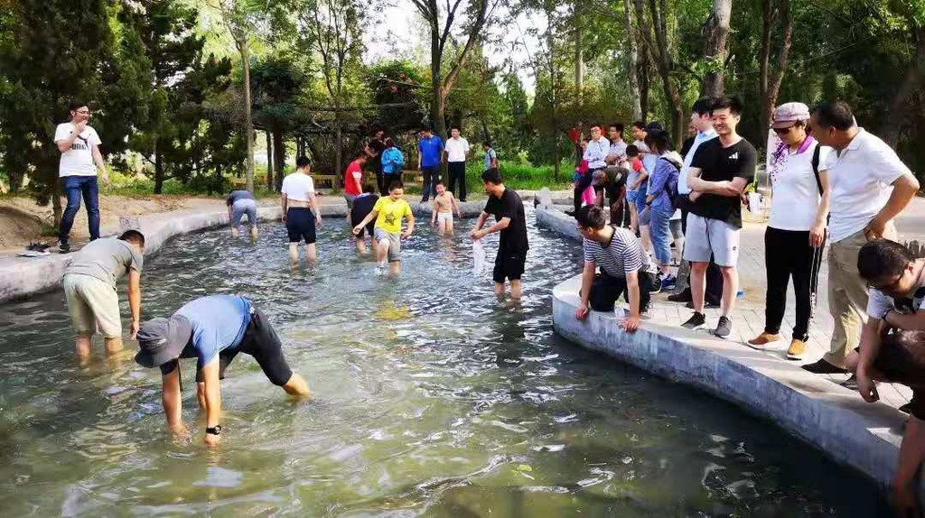 远处,被一片嬉笑声吸引,寻声而去,原来一群人在水里摸鱼,大人小孩齐上阵,突然,一个人滑到在水中,引得围观的人哄堂大笑。如此场景,逗得我也是哈哈大笑,真的很久没有感到如此的舒心惬意了。