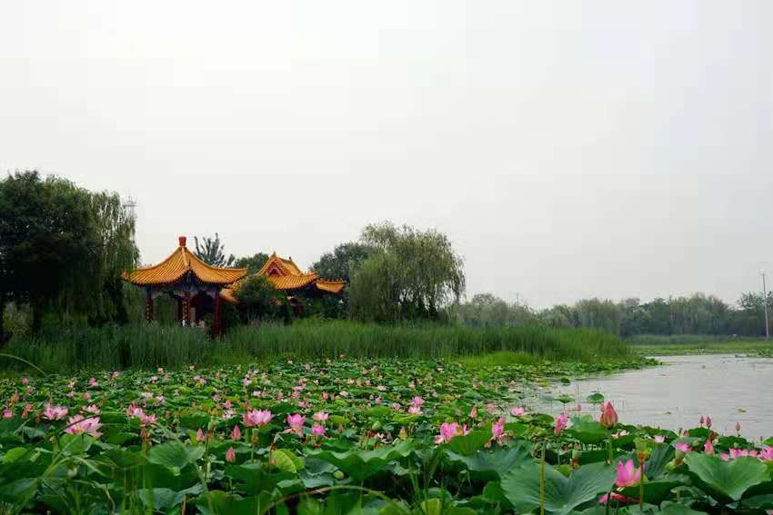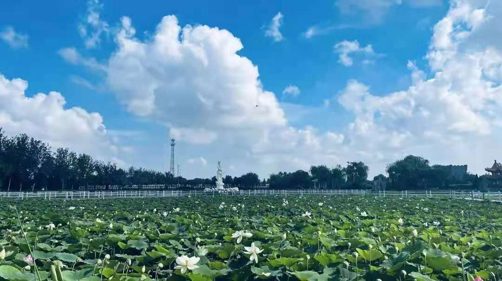 早上驱车赶往,停车场非常宽阔,进门买票,售票人员态度特别好,并给了我一个电话号码,如果走累了,可以打电话叫电瓶车。走进园区,蓝天、绿树、荷香、水景扑面而来。深深的吸一口气,满满的陶醉。
