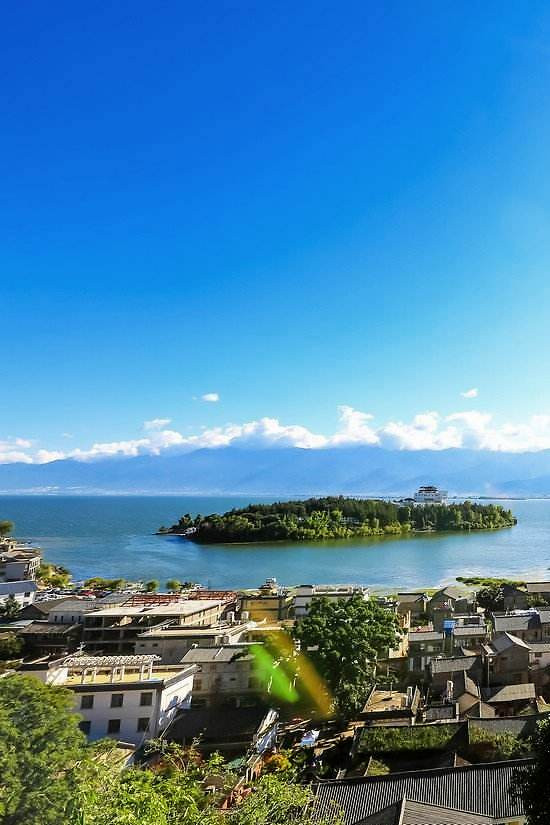 从船上四望双廊,别有感觉。三面环山,一面临海。西跳苍山十九峰,门临洱海万倾碧波,东靠“佛教胜地”鸡足山,南接“蓬莱仙岛”小普陀。双廊,果真是大理的灵魂之所。