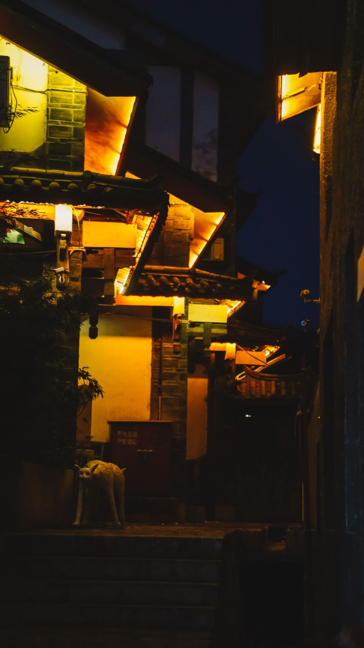 华灯初上,夜凉如水,历史藉着幽暗光影浮出水面,纳西族千百年的习俗的和故事,会继续传承;原道而来的熙攘游客,也在迷离夜色中铺开自己的故事。