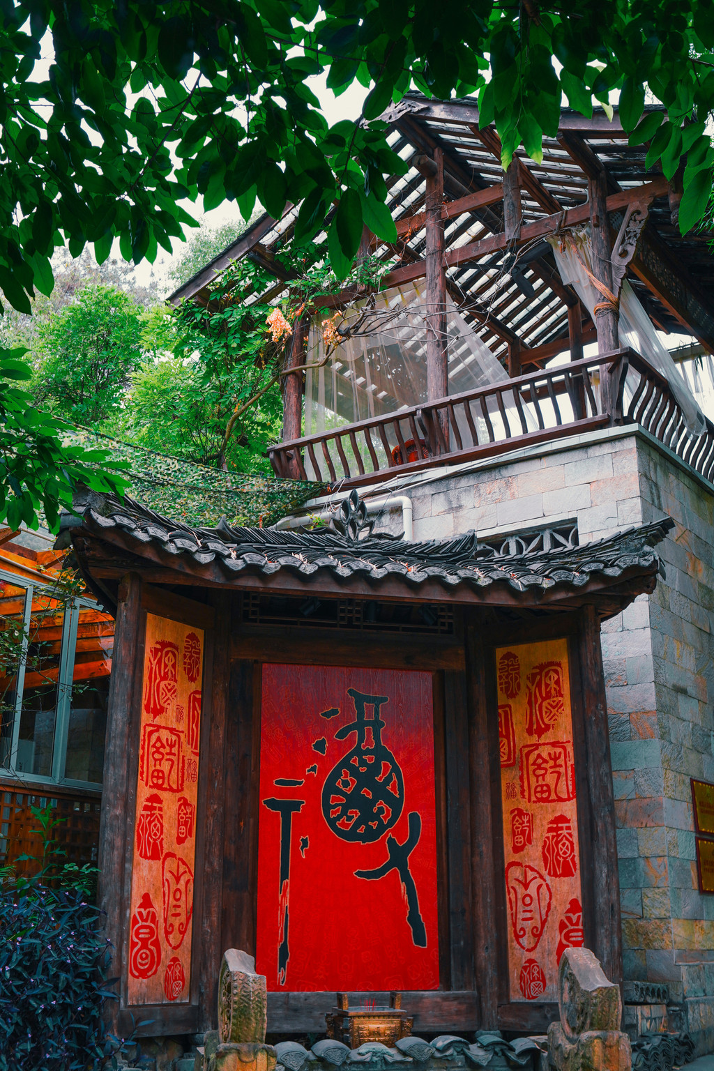 洪雅部落也最为惊喜,整块的把洪雅 的老房子迁徙到此处一片片绿色的竹林耸立于田野,将其中的宅院围绕,外围的耕地又将林盘包围,田地、树林、住宅,高低起伏聚合,不似于北方四合院的固化,自带了南方人的闲适和趣味,就像成都词汇中的“冲壳子”,这形象的话语也一定是从脚下有生命力的土地坝坝里冲起出来而成。