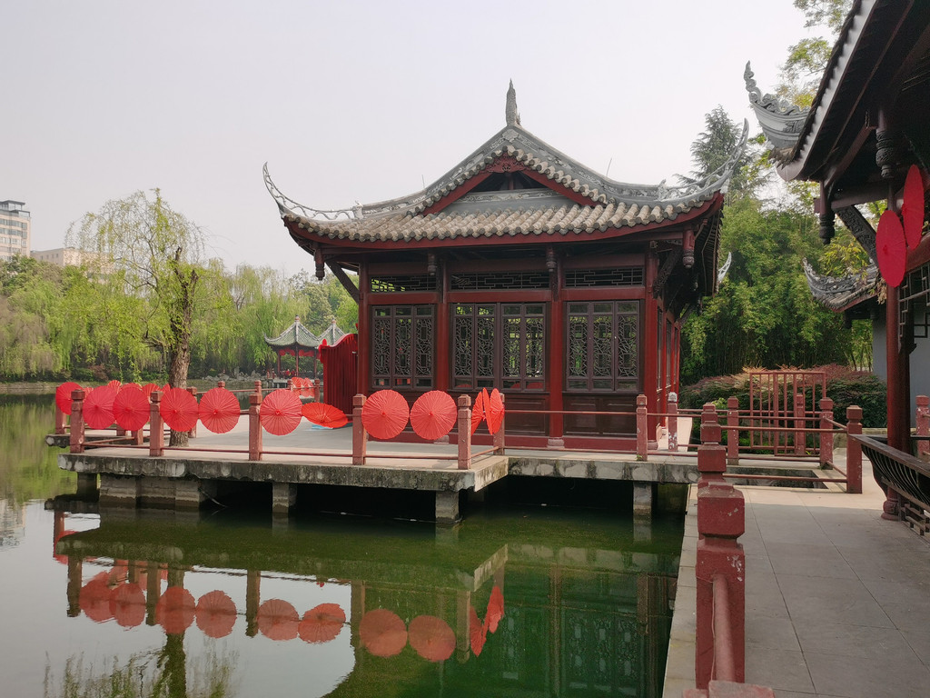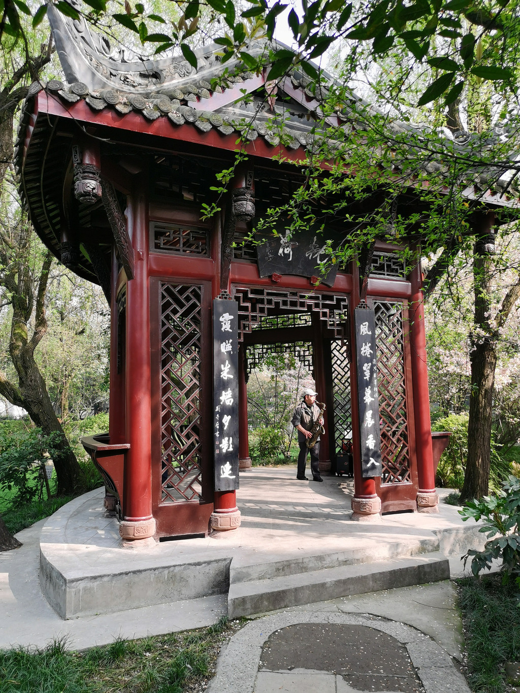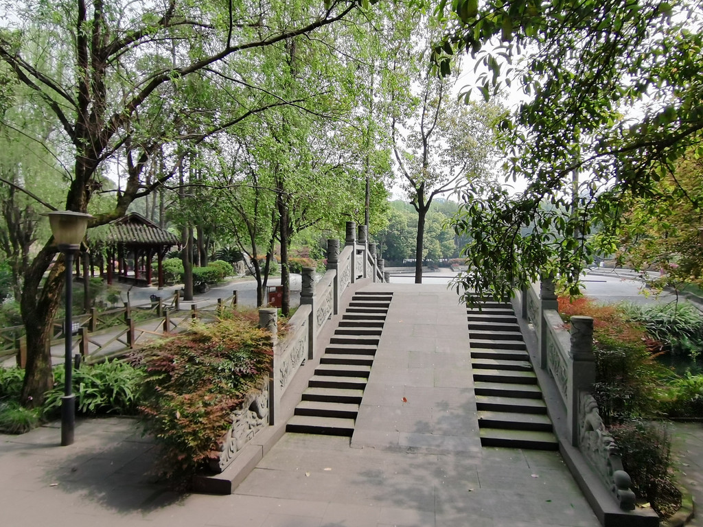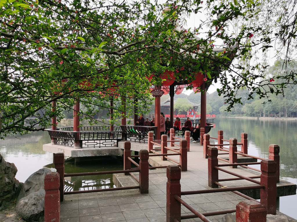 成都市内离海棠公园很近,地铁三号线往西南双流方向的东升站下来,走不多远就到了棠湖公园,它是以海棠和湖泊为特色的仿古园林,被誉为川西园林中一颗璀烂的明珠。湖以棠名,故名“棠湖公园”。园中环湖建了十多个景点,芳姿各具,各领风骚。目前公园开放有位于东北角的正大门,东门和南门三个门,我从正大门进园。