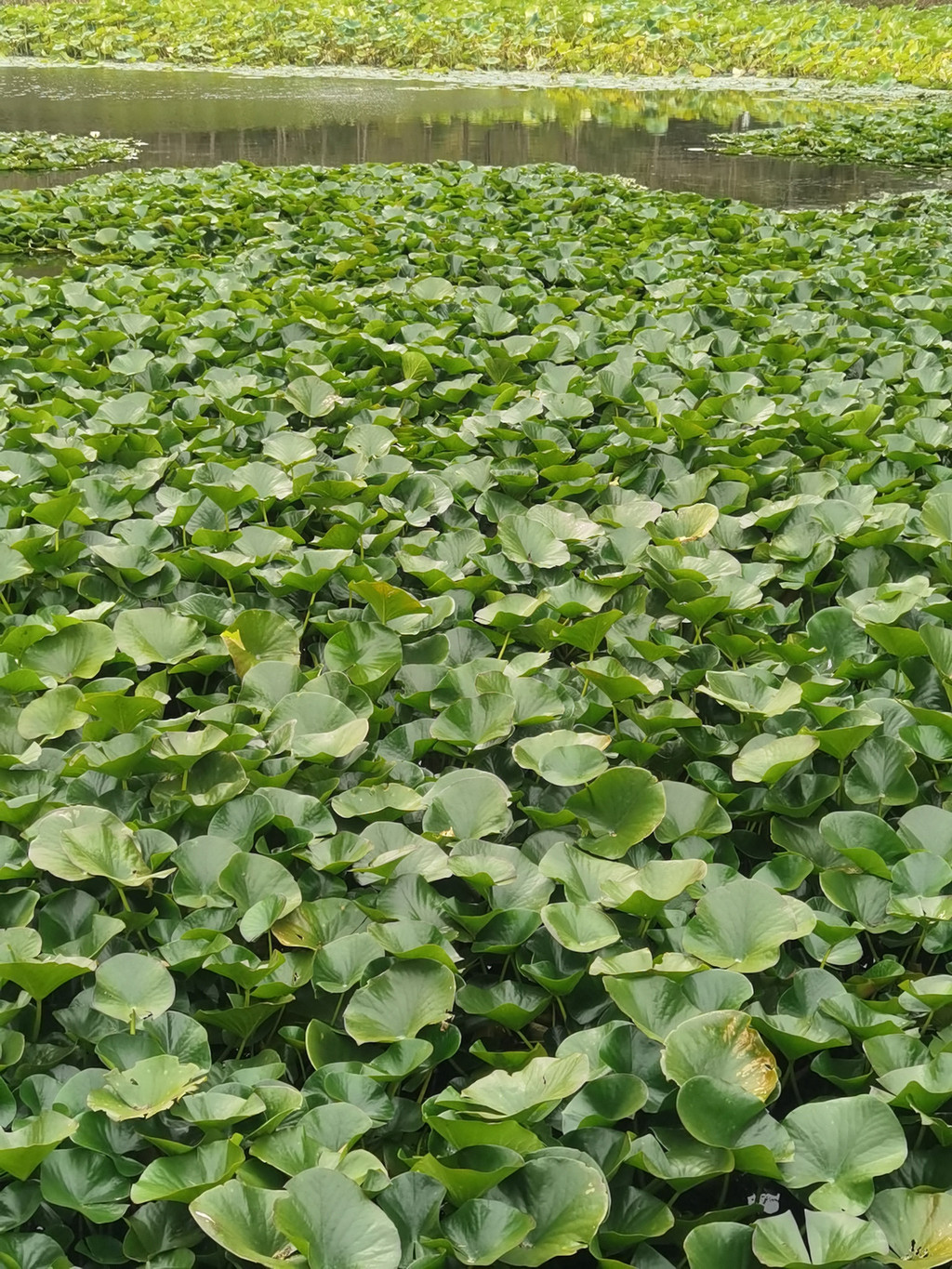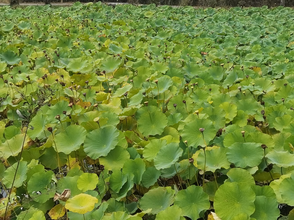 这满池塘的荷叶几乎转向同一个地方,从荷叶当中齐刷刷伸出脑袋的莲蓬头,真是很有趣的画面