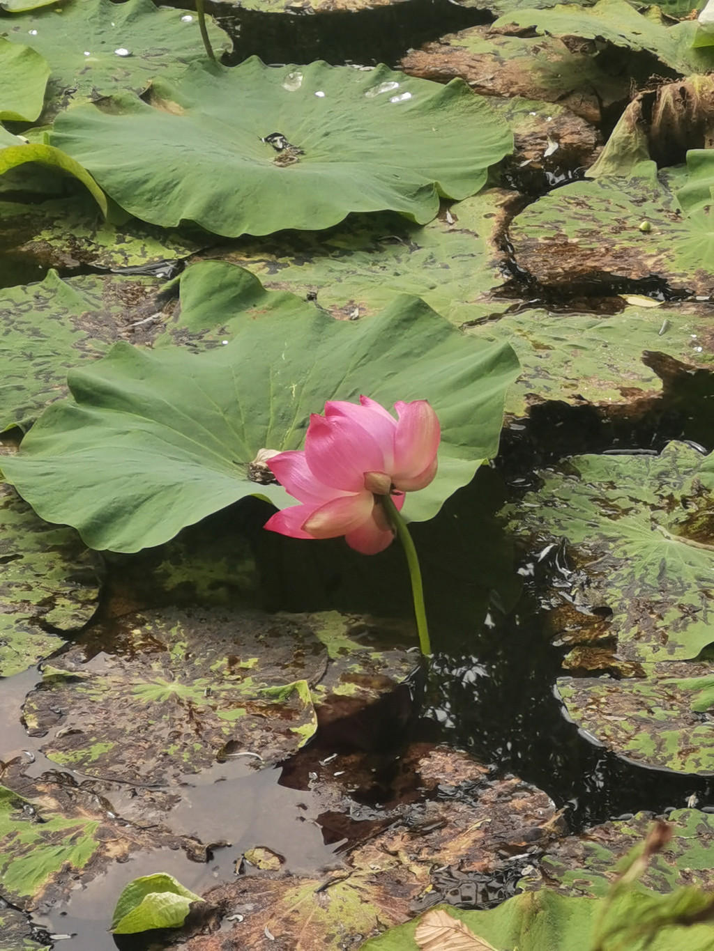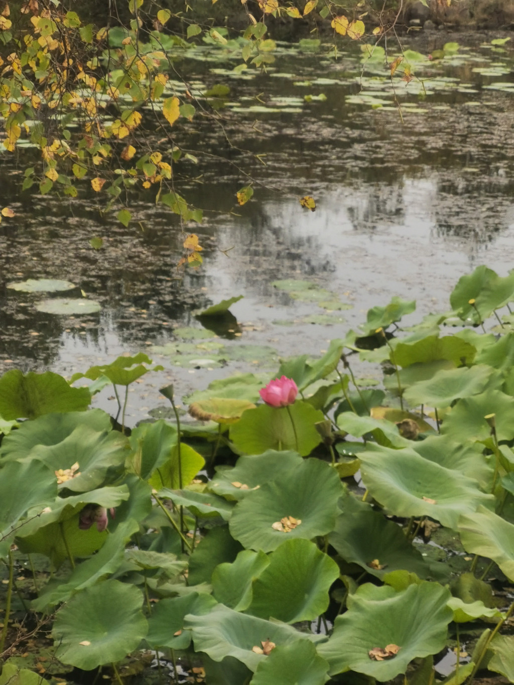 11.04到达海慧寺,园外的水塘里面有莲、有荷、有芦苇。荷花居然还有开,有点惊喜。