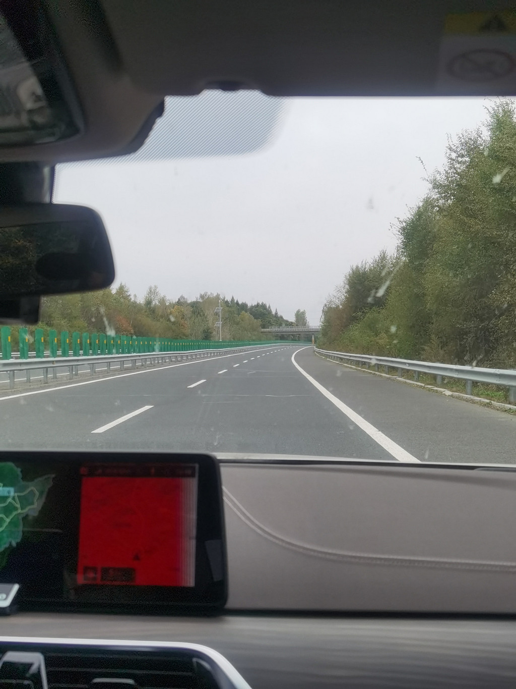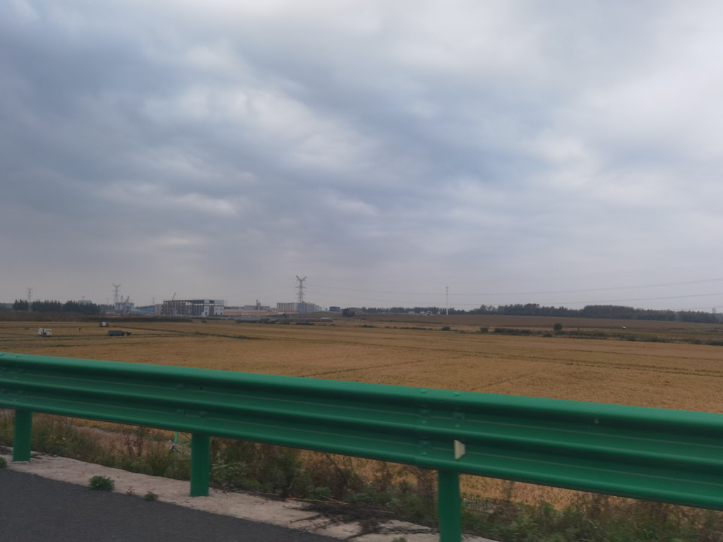 双向四车道的路,很平滑,车也不多,路边的庄稼地里,稻谷已经收割完毕,剩下的是玉米地。