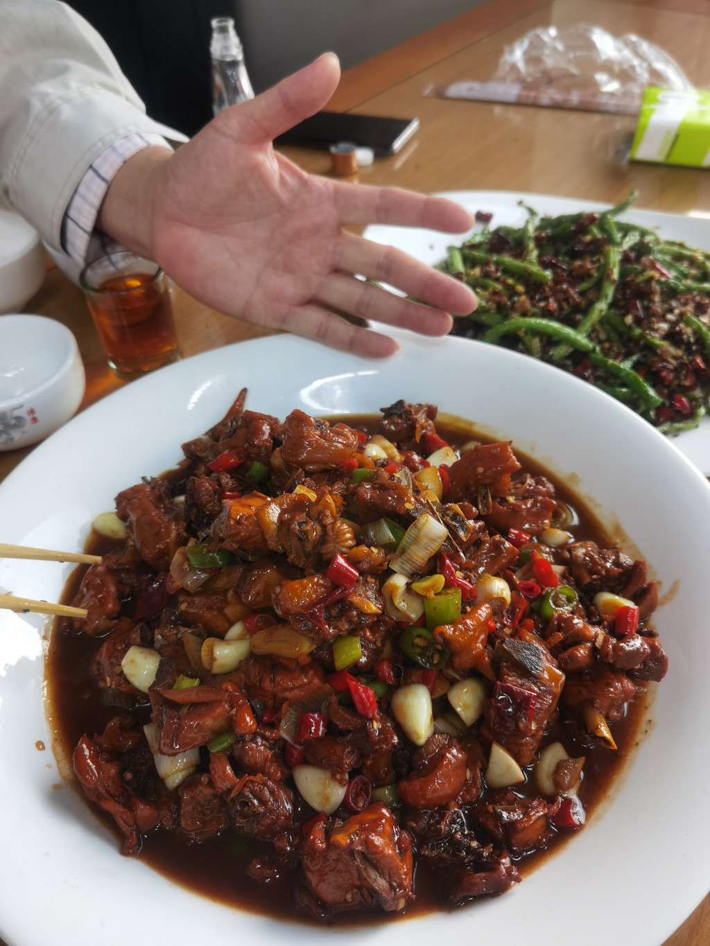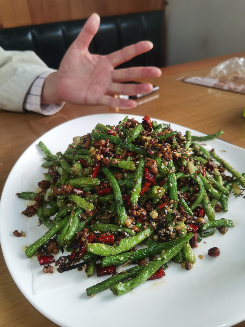 4:40到饺子馆,点了一个临沂生炒鸡,一个干煸豆角,一小瓶白酒,想吃饺子,但一份20个,根本吃不了,放弃了。