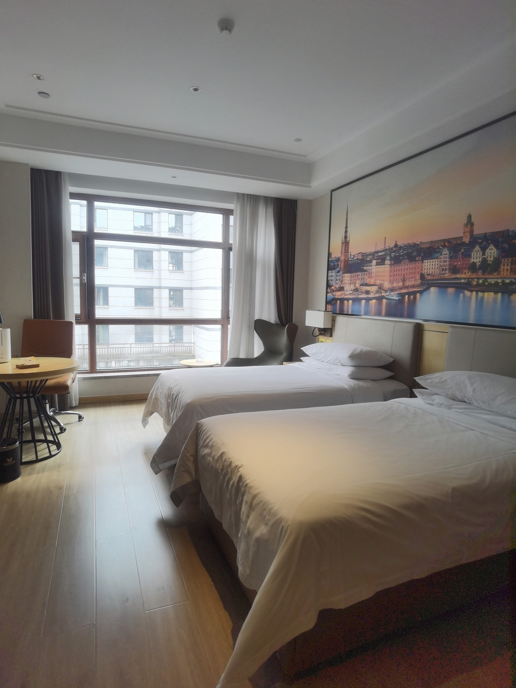 12点半转完了公园,其实也就是在下面的荷花池走了一走,没有进森林。因为虽然有栈道进入森林,但林高草深,前后看不到游人,我们也不敢贸然进入。所以还是决定去酒店入住休息。酒店很近,两公里多就到了,12:50入住维也纳国际酒店。319含双早,这样的软硬件还是可以的。
