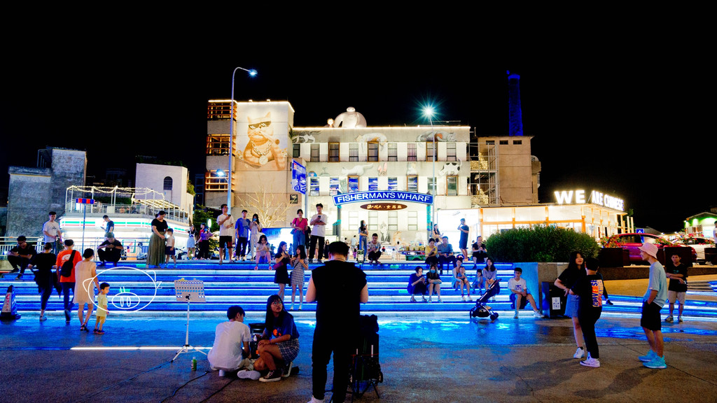 这里的路牌所指向的位置是世界各地的大型码头,现在只能是看看了。走在渔人码头整洁又充满时尚感的步行道上,一边是有历史感的老厂房,一边是风景宜人的德胜河,伴着阵阵江风,甚是惬意。滨江自然风光为背景,啤酒文化为仪式,营造出充满现代风情的主题广场,晚上还有各种爱好者自发的现场表演,文化氛围浓郁,不知觉的也停下来,感受这种悠闲的慢节奏生活。