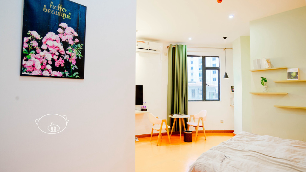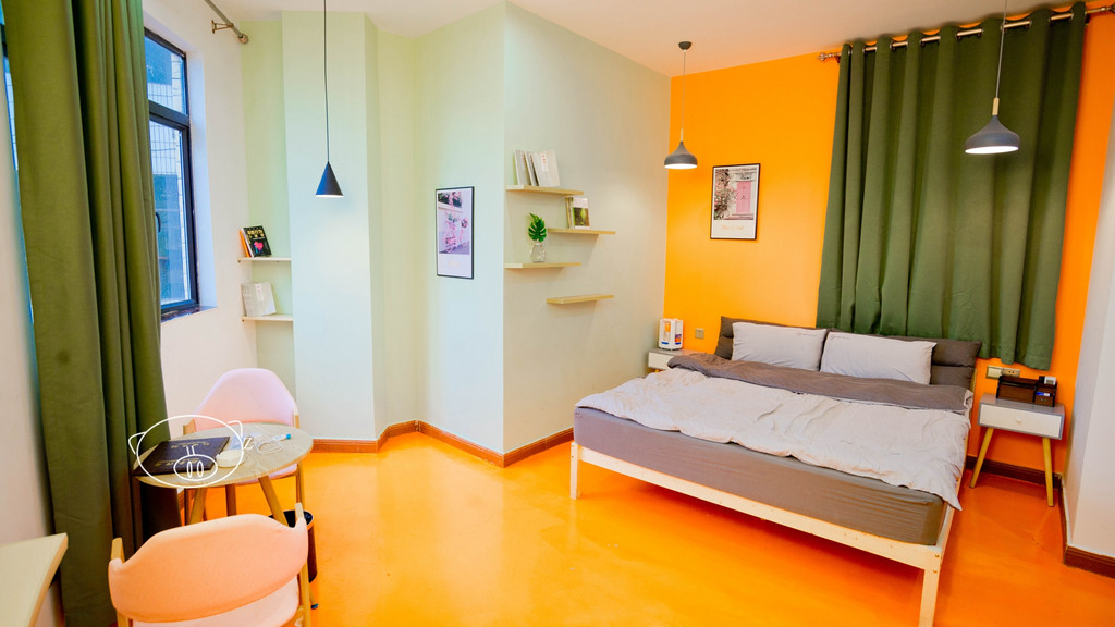 小清新房,又是另外一种味道,标准大床,房间还算大,五颜六色的,窗口边有两张椅子,配了小茶几,墙上做了不少层架,摆满了书籍,还有不少的挂画,少女心满满的,挂墙液晶电视,窗外能看到容桂的镇貌,免费WI-FI,分体空调,卫生间干湿分离,配有淋浴间。