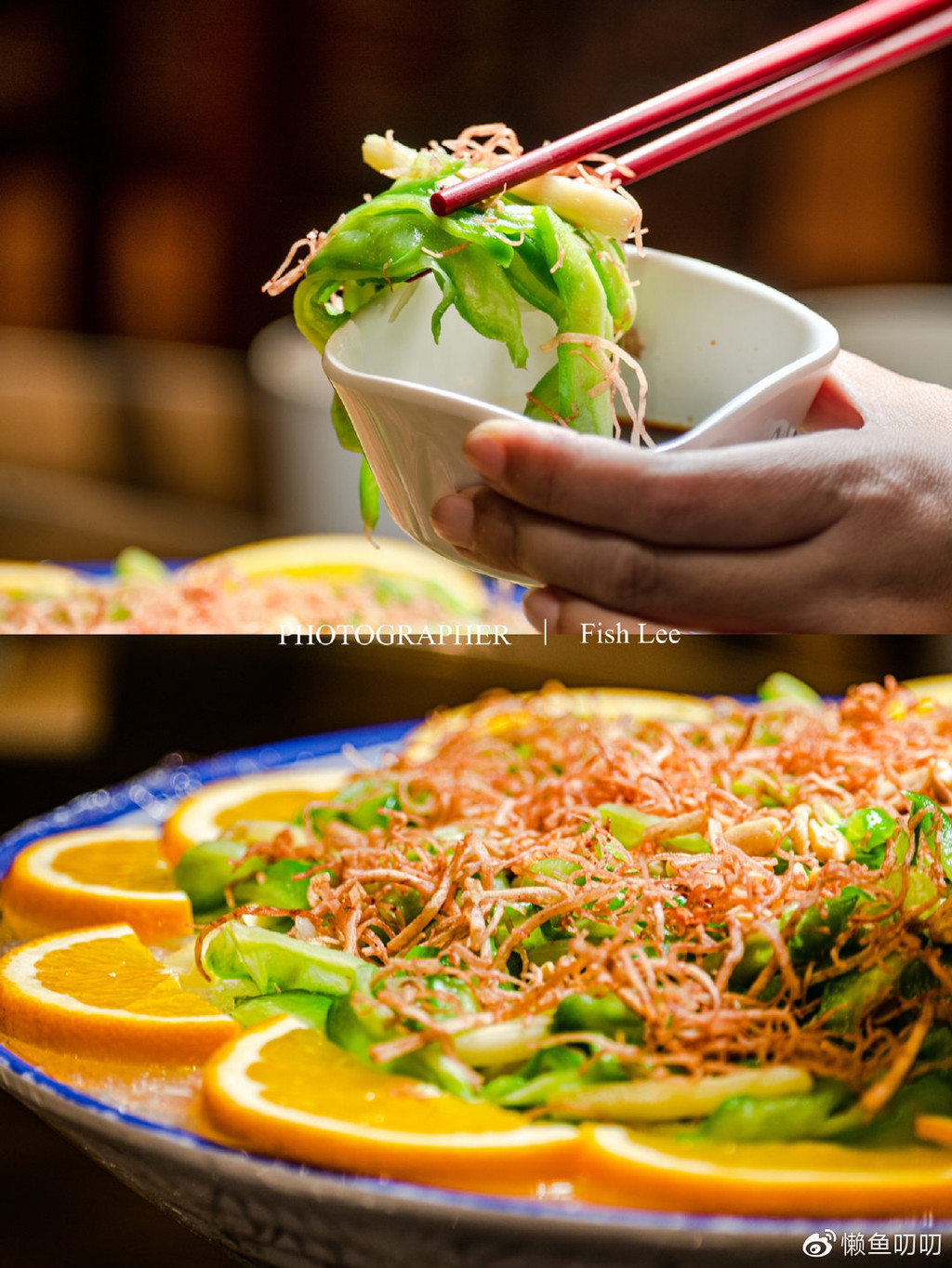 一席吃下来,每一道菜的味道都可圈可点,我比较推荐的是清热解暑的「大顶凉瓜刺身」,凉瓜被片的极薄,清清爽爽的蘸酱油芥末吃,十分开胃;还有焦香酥脆的「顺德煎鱼皮」和「勒流煎焗鱼嘴」;再就是酱香弹牙的「柚皮扣顶骨大鳝」了。
