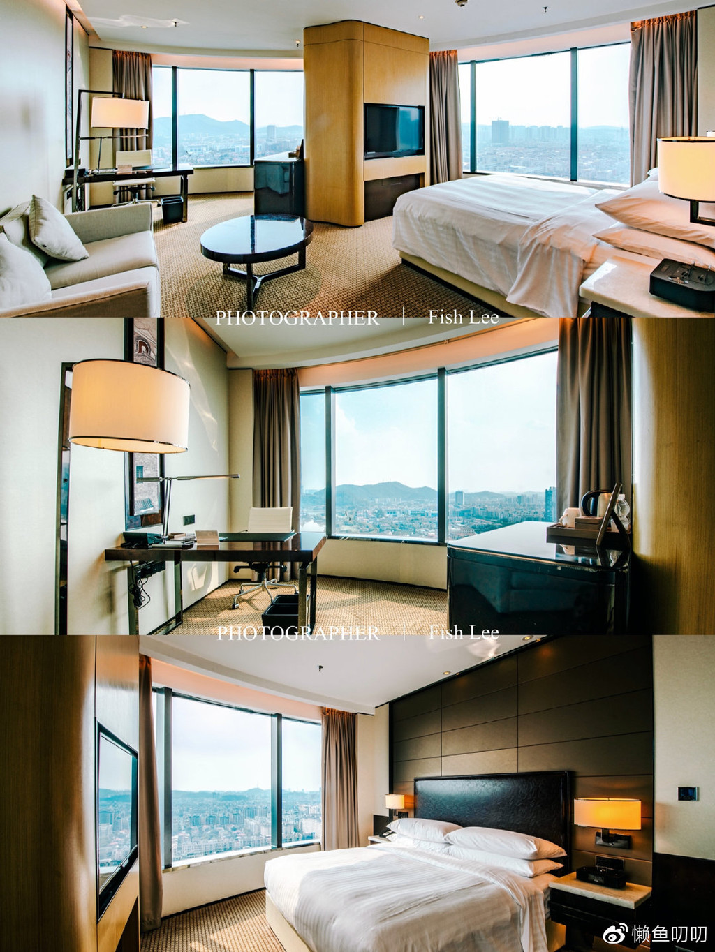 在工作人员的引领下,我们抵达二楼大堂办理入住,帮手办理的工作人员效率挺高,没一会儿就全部搞定,然后我就拎着房卡在工作人员的指引中,去往位于酒店23楼的房间。这趟入住的房间不仅窗明几净、布局宽松合理,视野也非常开阔。办公台、床边和卫浴空间里的大窗包揽了不止一百八十度的美景,其中囊括了顺峰山的青山、碧湖、塔、寺,还有城景,日落时分更是美不胜收!