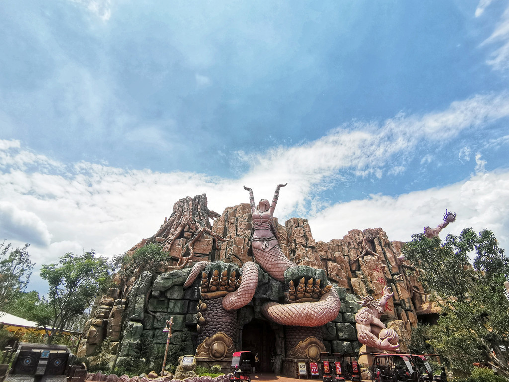 《女娲补天》:第一个项目就给了我们惊喜。外观就是女娲娘娘补天的一个造型,旁边还有祝融和共工大战,视觉效果很赞!