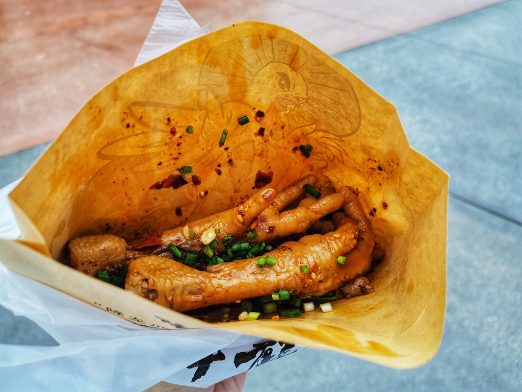 吃喝:入园玩一天当然少不了吃吃喝喝,园区卖吃的挺多的,一路上都有,所以可以尽量打卡项目,玩累了就近选择餐厅吃饭就可以了!我们沿路看到过钵钵鸡、桥头排骨、降龙爪爪等川味小吃店,感觉都还不错。为了照顾不同的口味,我们一家选了一点拿到节庆广场上吃,味道竟然都不错,推荐!