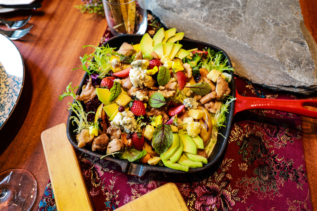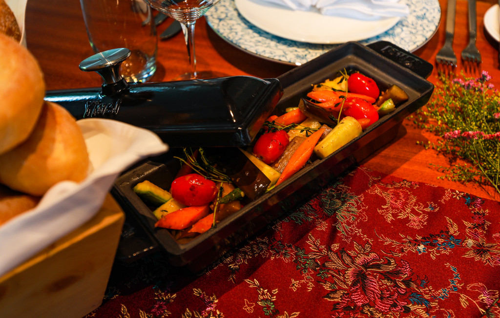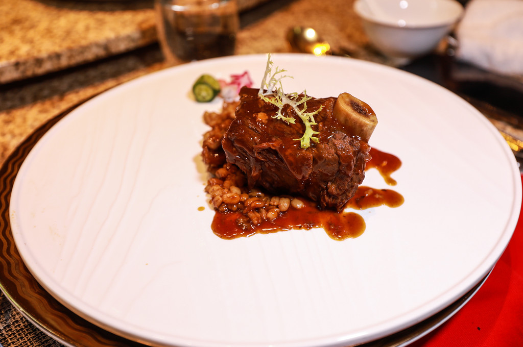 稞煎焗牦牛排,这一道菜是中厨厨师长刘杨师傅精心研发的,选用牦牛排在经过香料和青稞的慢火熬制后,口感软糯,再通过高温的煎焗,使其颜色金黄,香气扑鼻,牦牛肉的精华所在不仅仅是脂肪含量低,它的口感有一定韧性,柔软适中,嚼后留香。