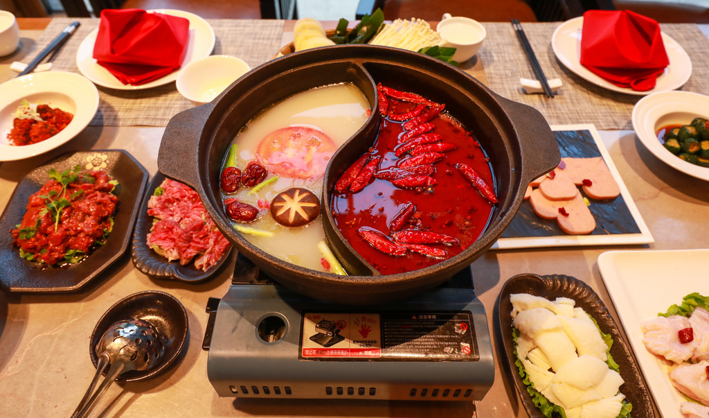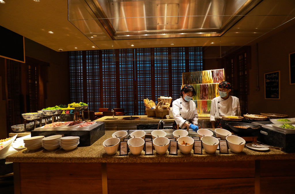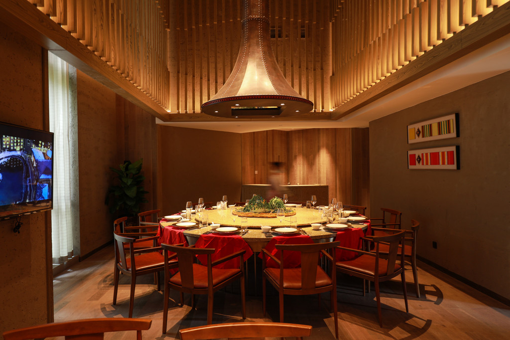 中餐厅的环境比较正式精致,波浪条纹式的吊顶设计,让整个餐厅变得生动充满活力,当然也融入了当地藏式元素,每一处细小的装饰都是非常讲究,中餐厅设有开放式的大厅和包厢,可以满足不同人需求,当然除了火锅这里还有最地道的川菜哦!