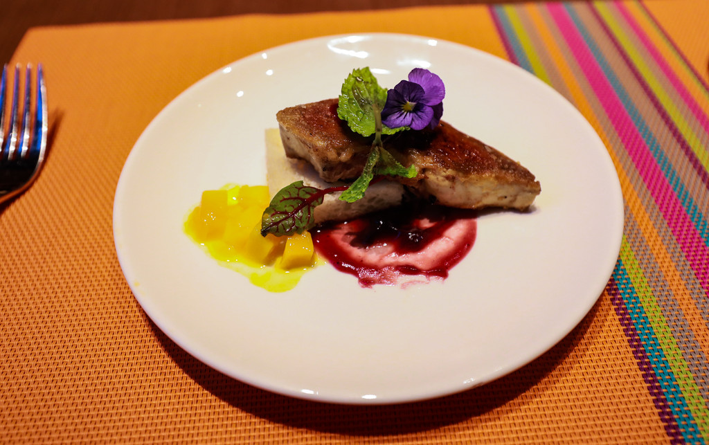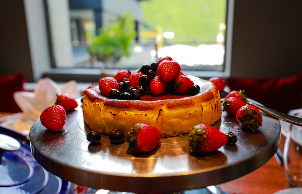 除了主菜香煎三文鱼、烤牛肉、烤全鸡,还有芝士蛋糕,这是我的最爱,配上新鲜水果草莓加蓝莓口感甜而不腻,伴着浓郁的芝士香味,入口丝滑,诱人回味。