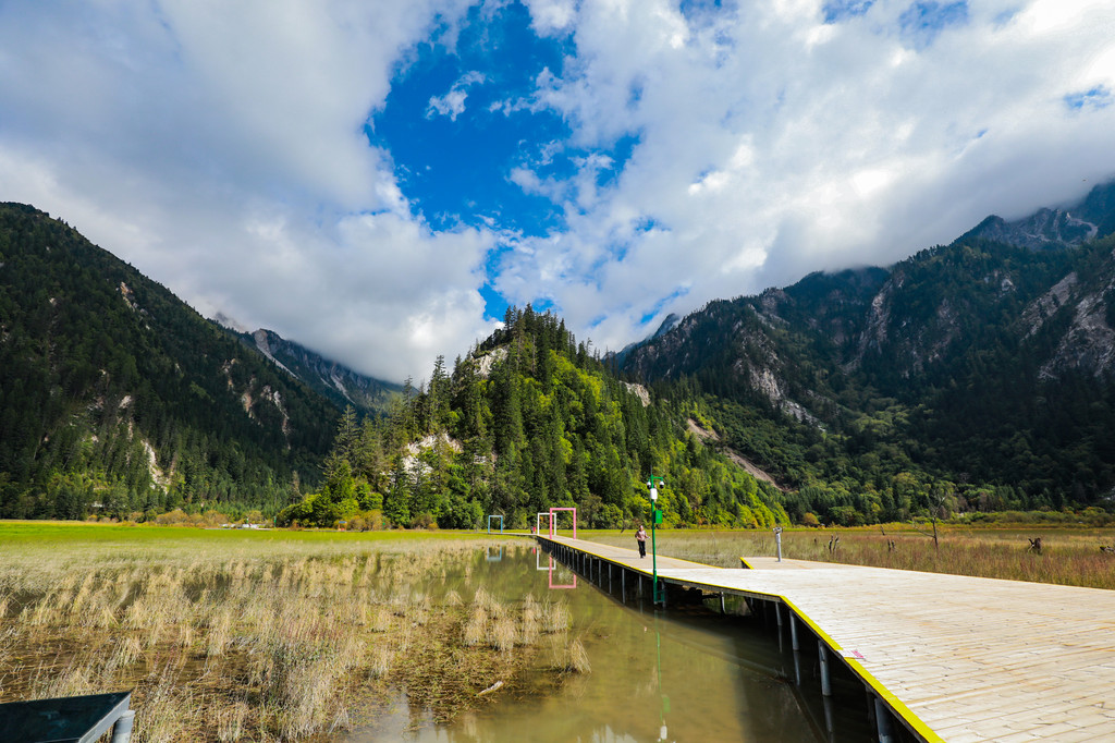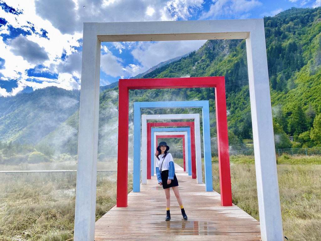 甘海子在九寨算是比较冷门的一个景点,虽然冷门但里面的风景确是很不错的,景区主要是由金犀牛海、芳草海、九曲彩河组成的湖泊群,还设有胡朦胧爱心拱门、民俗风情永恒塔、幸福转经桶、姻缘幡、七彩栈道、揽山坞、比翼齐飞等网红拍照打卡点,特别适合情侣游哦!