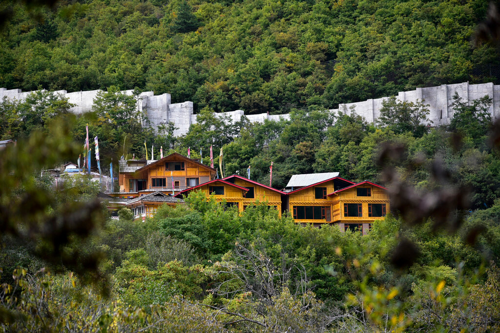 九寨的山水壮美令人振奋,更有浓郁的民族风情使人陶醉,从爱情海往酒店的方向走大概二十分钟的车程,就是“中渣沟村”一个名不见经传的藏族村寨,坐落于宁静秀美的山谷中,登上高处远远的望去那错落有致的房屋与五彩的经幡相伴相衬。
