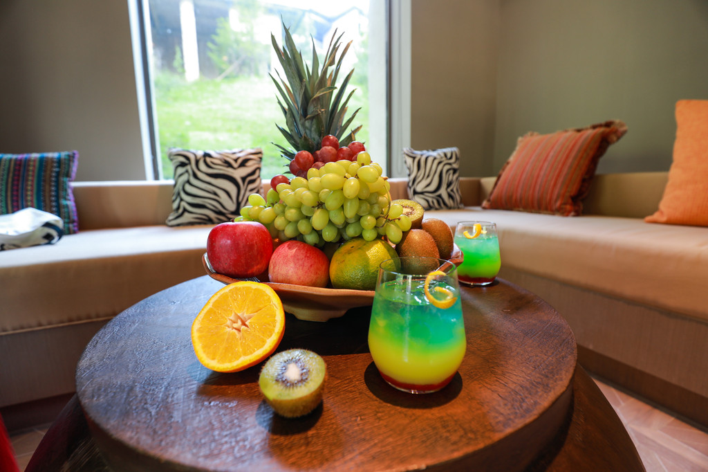 休闲时,坐在房间内听听音乐,泡一杯咖啡,吃上新鲜的水果和甜点也是极好的...