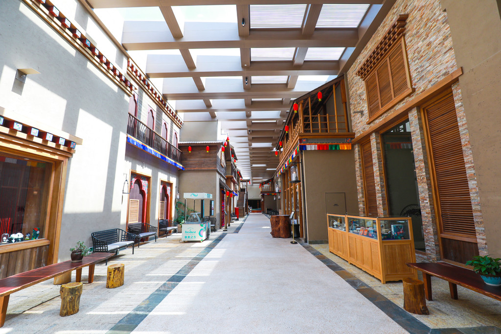在酒店大堂背后,还有一条藏寨风情的小街道,街道一旁是餐厅,一边是当地特色手作卖店,如果想带纪念品的就可以来这里逛逛,街边还设有许多好看的信箱和木椅帐篷很适合拍照打卡哦!