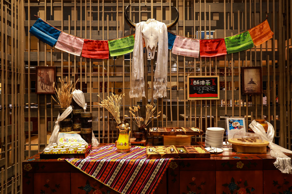 旅行中美食与美景缺一不可,休整了一个下午,晚餐我们选择在酒店的全日制自助餐厅,来这里吃上一顿美味的藏式佳肴及海鲜自助大餐,感受当地藏式风情的美食特色。