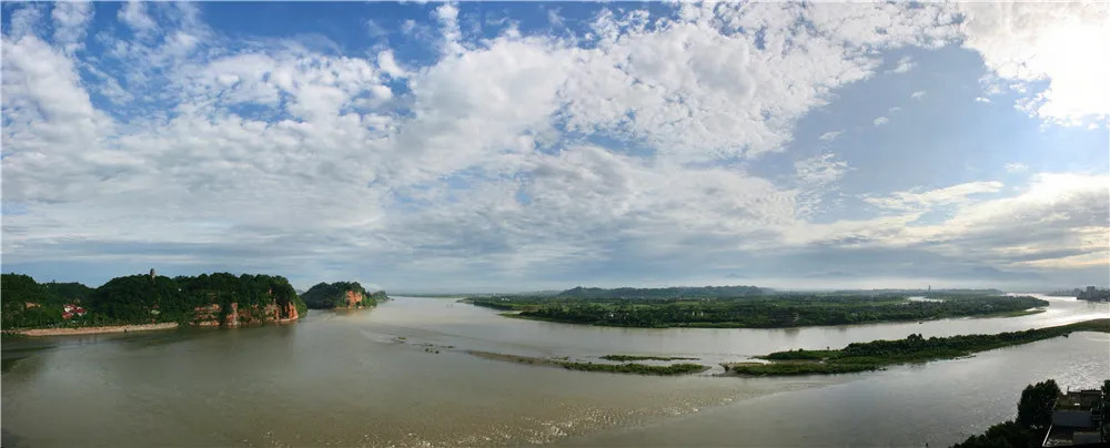 乐山大佛与峨眉山相依连(左为乐山大佛,右笫一座山峰为峨眉山)-宋道君于2008.7.15摄于四川乐山肖公嘴。